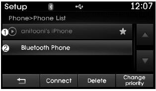 В списке сопряженных телефонов выберите устройство, которое хотите подключить, и нажмите