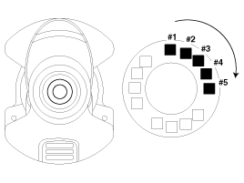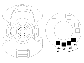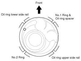 Расположите поршневые кольца так, чтобы концы колец были, как показано на рисунке. (Кольцо №1 должно быть на противоположной стороне от кольца №2.)