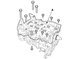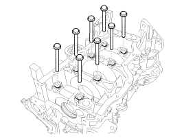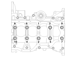 С помощью SST (09221-4A000) установите и затяните 10 болтов крышек коренных подшипников в несколько проходов в указанной последовательности.