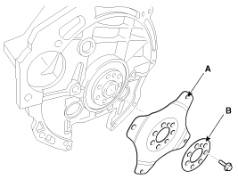 Автоматическая коробка передач: снимите ведущий диск (А) и переходную пластину (В).