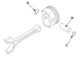 Установите стопорное кольцо (С) с другой стороны после установки поршневого пальца.