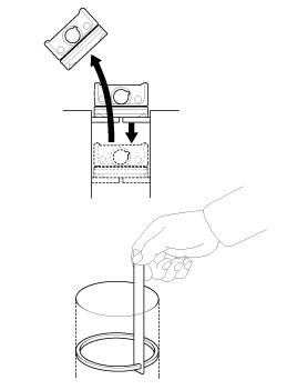 Протолкните поршень и шатун в сборе с верхним подшипником через верхнюю часть блока цилиндров.