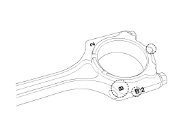 Совместите переднюю метку поршня и переднюю метку шатуна.