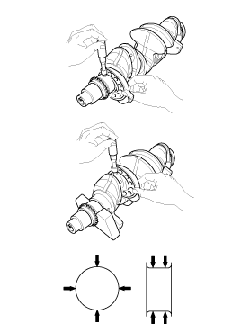 Поднимите коленчатый вал (А) из двигателя, стараясь не повредить шейки.