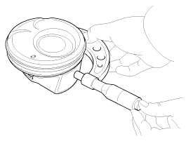 Проверьте посадку между поршнем и поршневым пальцем. Попробуйте переместить поршень вперед и назад на поршневой палец. Если чувствуется какое-либо движение, замените поршень и палец в комплекте.