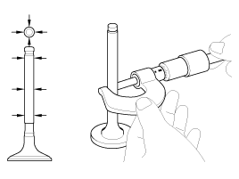 Если высота кулачка меньше спецификации, замените распределительный вал.