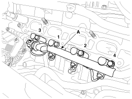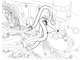 Снимите трубку высокого давления (A) и кронштейн PCSV (электромагнитный клапан управления продувкой) (B).