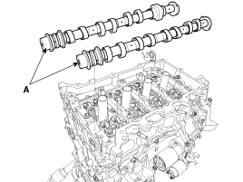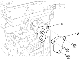 Снимите впускной CVVT в сборе (A) и выпускной CVVT в сборе (B).