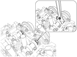 Снимите цепь привода ГРМ, включая приводной ремень, крышку головки блока цилиндров, генератор и крышку цепи привода ГРМ.
