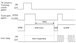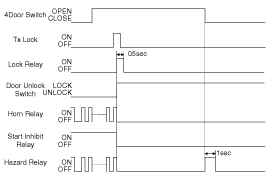 Состояние ALL DOOR LOCK (любая дверь открыта > все двери закрыты) и (переключатель багажника OPEN или выключатель капота OPEN)