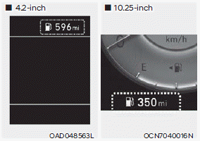 Если расчетное расстояние меньше 1 мили (1 км), бортовой компьютер показывает «---» как расстояние до пустого. Когда это происходит, немедленно заправить автомобиль.