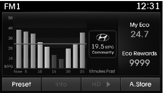 Каждые 2,5 минуты Eco Coach сравнивает вашу экономию топлива с государственной. протестированные средние (EPA) или другие аналогичные модели Hyundai (сообщество), основанные на вашем предпочтение.