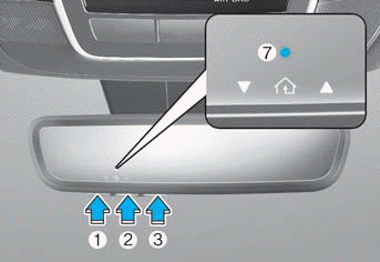 1. Нажмите и отпустите HomeLink кнопка 1, 2 или 3 для программирования. Индикатор HomeLink 7 медленно мигает оранжевым (если нет, выполните шаги «Стирание HomeLink Кнопки» и начать сначала).