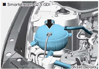 Замените охлаждающую жидкость авторизованный дилер HYUNDAI в соответствии с График технического обслуживания.