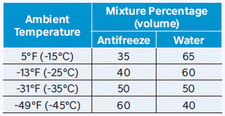 Проверьте защиту от замерзания и уровень охлаждающей жидкости не реже одного раза в год, перед зимний сезон или перед поездкой в более холодный климат.