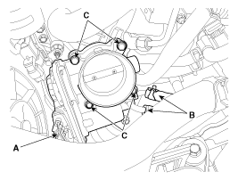 Выверните установочные болты (С) и снимите модуль ETC с двигателя.