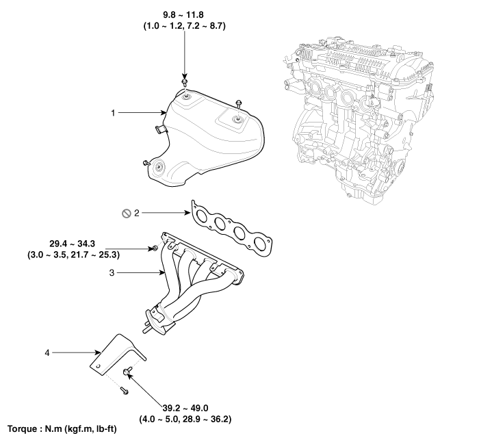Hyundai Tucson: система впуска и выпуска / расположение компонентов и компонентов выпускного коллектора