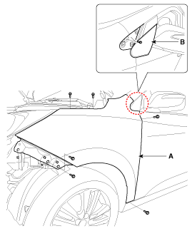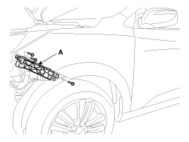 Ослабив крепежные винты, снимите боковую монтажную скобу переднего бампера (А).