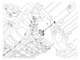 Поднимите автомобиль, затем снимите пробку уровня масла (А) с крышки блока клапанов.