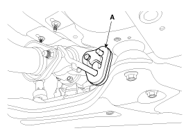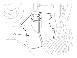 Ослабьте болт (А) и отсоедините узел универсального шарнира от шестерни рулевого механизма.