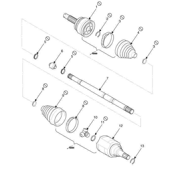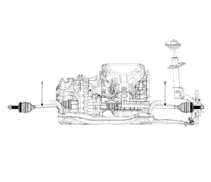 Hyundai Tucson (LM) 2010-2015 Руководство по ремонту / Карданный вал и ось / Сборка карданного вала / Компоненты переднего карданного вала и расположение компонентов