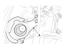 Снимите крепежный болт и гайку нижнего рычага (А) с поворотного кулака.