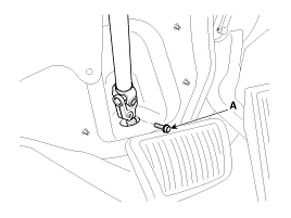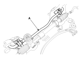 Ослабьте болт (А) и отсоедините узел универсального шарнира от шестерни рулевого механизма.