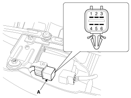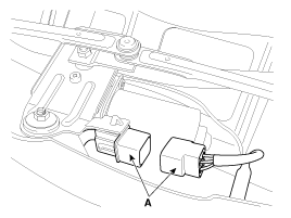 Отсоедините разъем электродвигателя стеклоочистителя (А) от электродвигателя и рычажного механизма стеклоочистителя в сборе.