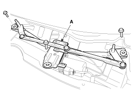 Снимите двигатель стеклоочистителя ветрового стекла и рычажный механизм (А), отвернув 3 болта.