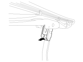 При необходимости освободите фиксатор щетки стеклоочистителя, потянув вверх, и снимите щетку с внутреннего радиуса рычага стеклоочистителя.