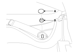 Снимите рычаг и щетку стеклоочистителя после снятия гайки (В) и крышки стеклоочистителя (А).