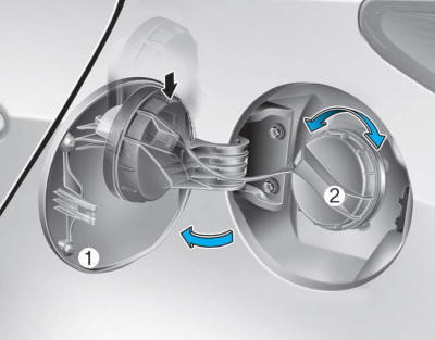 Если требуется замена крышки топливного бака, используйте только оригинальную крышку HYUNDAI. или эквивалент, указанный для вашего автомобиля. Неправильная крышка топливного бака может привести к при серьезной неисправности топливной системы или системы контроля выбросов.