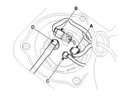 Отсоедините быстроразъемный соединитель трубки подачи топлива (C) и быстроразъемный соединитель газоотводной трубки (D).