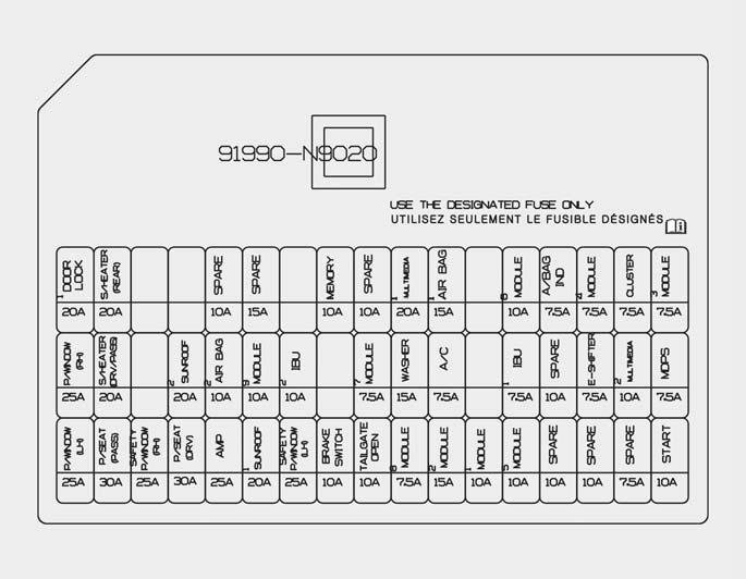 Внутри крышки панели предохранителей вы можете найти этикетка с описанием названий предохранителей и рейтинги.