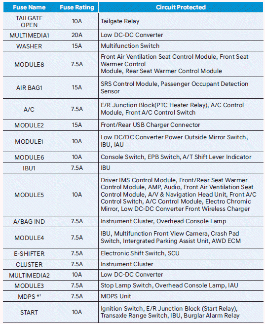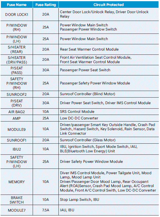 Не все описания панели предохранителей в этом руководство может быть применимо к вашему транспортное средство. При осмотре панели предохранителей на вашем автомобиле, обратитесь к панели предохранителей этикетка в вашем автомобиле.