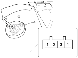 Снимите микрофон громкой связи (A) после ослабления разъема и винтов (3 шт.) на верхней части петли.