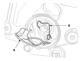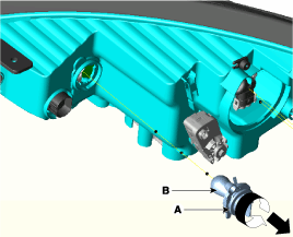 Поверните патрон лампы (А) против часовой стрелки, чтобы снять лампу указателя поворота (В).