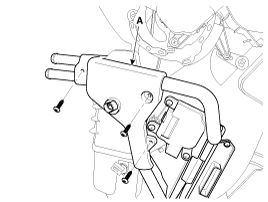 Ослабьте крепежный винт и снимите крышку радиатора нагревателя (А).