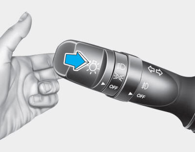 Чтобы включить дальний свет фар, потяните рычаг на себя, затем отпустите рычаг. Дальний свет будет оставаться включенным до тех пор, пока вы держите рычаг по направлению к себе.