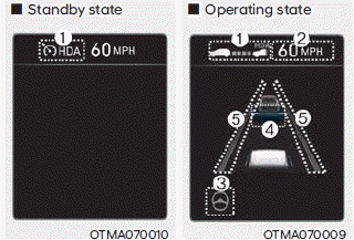 Статус системы помощи при вождении на шоссе операция появляется в режиме помощи при вождении на комбинации приборов. Обратитесь к Раздел «Режимы просмотра» в главе 4.