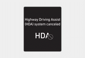Если у водителя до сих пор нет своего руки на руле после предупреждение о невмешательстве, "Вождение по шоссе" Предупреждение об отмене системы Assist (HDA) может появиться сообщение и Highway Помощь при вождении автоматически отключается.