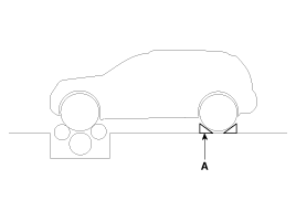 Загоните автомобиль на тестер спидометра. Используйте противооткатные упоры (A) по мере необходимости.