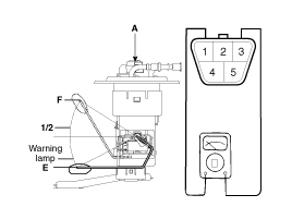 Включите зажигание в положение ON, а затем убедитесь, что лампочка загорается, а стрелка указателя уровня топлива находится на максимальном отметке.
