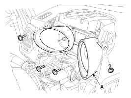 Снимите панель приборов (A) с корпуса после ослабления 4 винтов.