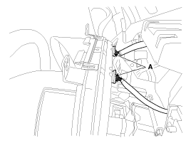 Отсоедините разъем проводки (А) от датчика температуры охлаждающей жидкости двигателя в моторном отсеке.