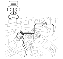 Подсоедините контрольную лампочку 12 В, 3,4 Вт между разъемом № 2 со стороны жгута проводов и массой.