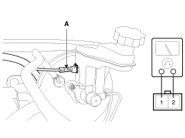 Снимите разъем (А) с выключателя, расположенного на бачке тормозной жидкости.