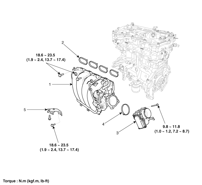 Hyundai Tucson: система впуска и выпуска / компоненты впускного коллектора и расположение компонентов