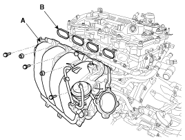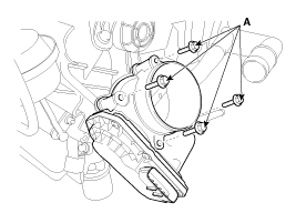 Отверните болты (А) модуля ETC (электрического управления дроссельной заслонкой).
