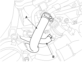 Отсоедините вакуумный шланг (A) и шланг PCSV (электромагнитный клапан управления продувкой) (B).